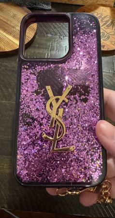 New Flowing Glitter YSL iPhone 15 Pro Case With Detatchable Chain - cell phones - by owner - electronics sale -...