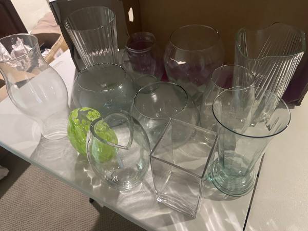 FREE - 11 Flower Vases plus 1 hurricane globe - gently used - free stuff - craigslist