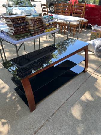 Free TV console stand glass shelves - free stuff - craigslist